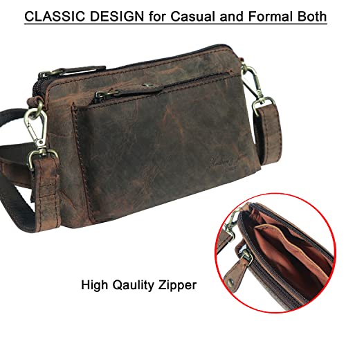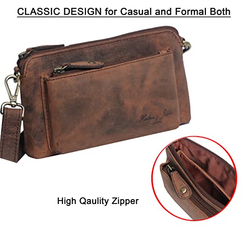 Details: ✅ Crafted from tough real Leather, which takes hits well and looks even better with age. Which is the most expensive and toughest part. The distinguishing feature of this leather is that the leather may have wrinkles, scratches that are inherent characteristics. Our Products are handmade by Professionally Skilled Craftsmen, because of which the bags have best finishing in its class. Internally Lined with Strong Canvas make it Durable and Long Lasting. ✅ Outer Material: Leather; Inner Material: Canvas Dimension(L X W X H): 20 x 4 x 11 Cms ✅ Closure Type: Zip ; Strap Type: shoulder strap ✅ Number of Compartments:3
