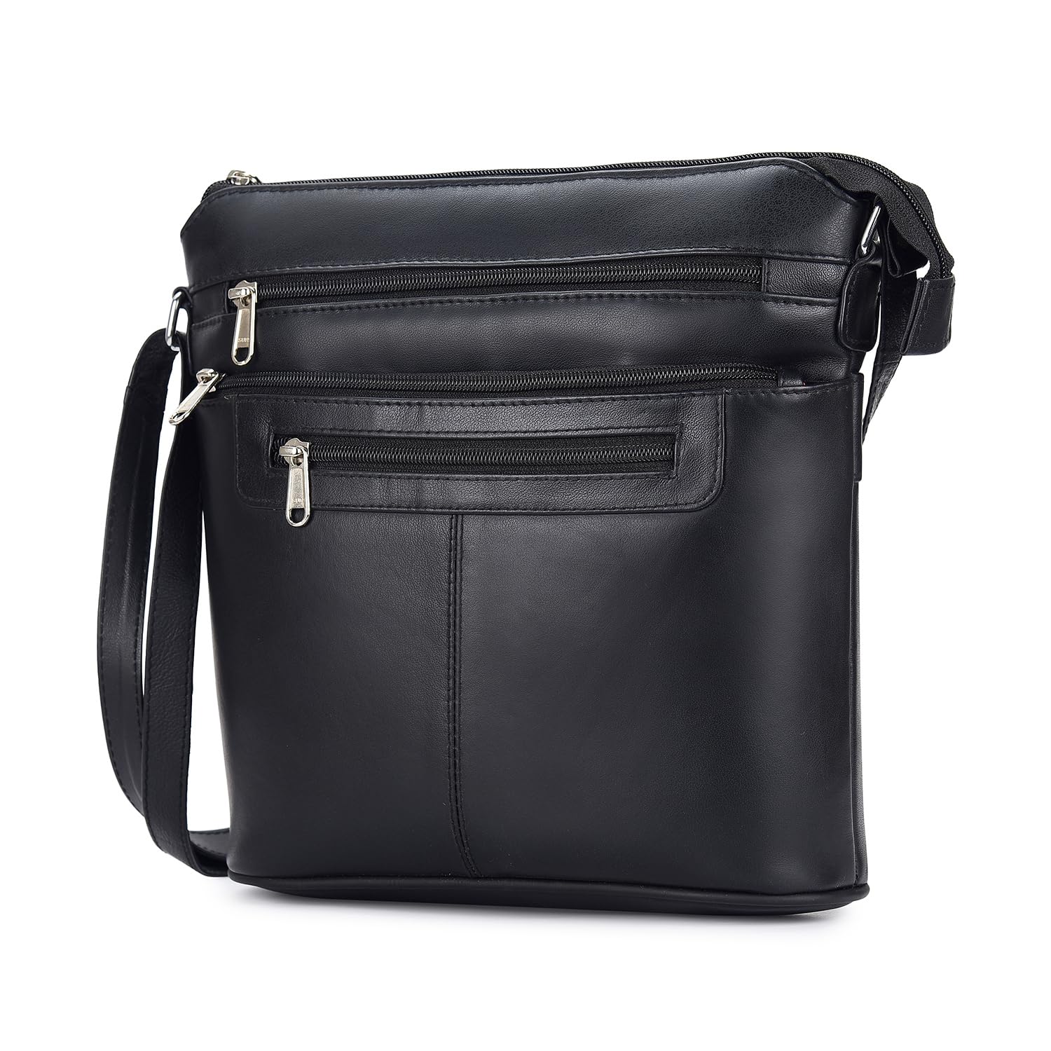 Details: Description ✅ 100% GENUINE LEATHER: Crafted from tough, 100% Semi Full-Grain Boot Leather, which takes hits well and looks even better with age. Full-Grain Leather is the top layer of the Cow skin which is the most expensive and toughest part. The distinguishing feature of this leather is that the leather may have wrinkles, scratches that are inherent characteristics. ✅ CRAFTSMANSHIP, STITCHES AND PARTS: Our Products are handmade by Professionally Skilled Craftsmen, because of which the bags have best finishing in its class. Brass / Metal Fitting Buckles and Holders are Internally Lined with Strong Lining, make it Durable and Long Lasting. Every stress point on this bag is double-stitched and riveted or reinforced with hidden nylon strapping. 100% Leather ✅ FEATURES AND COMPARTMENTS: One main Zipped compartment with an interior pocket compartment, . One Large Zipped compartment at the rear. One Large Zipped compartment at the front. ✅ Product Dimensions: 25 x 28 x 9 cm Perfect Gift
