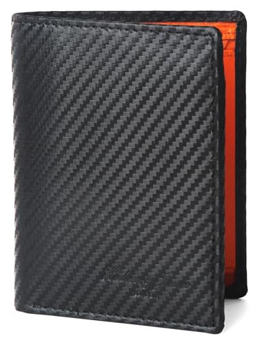 - ✅ Wallets men’s with 13 card holders. A trend-driven wallet, constructs in carbon Fibre leather and durable Cow leather for an urban look. With smooth and sturdy stitching seams, no loose threads, the leather wallet is comfortable to touch that gives a luxurious feel while ensuring a long-lasting usage. An ideal choice for men who are travellers, businessmen, live overseas or enjoy vacations.
