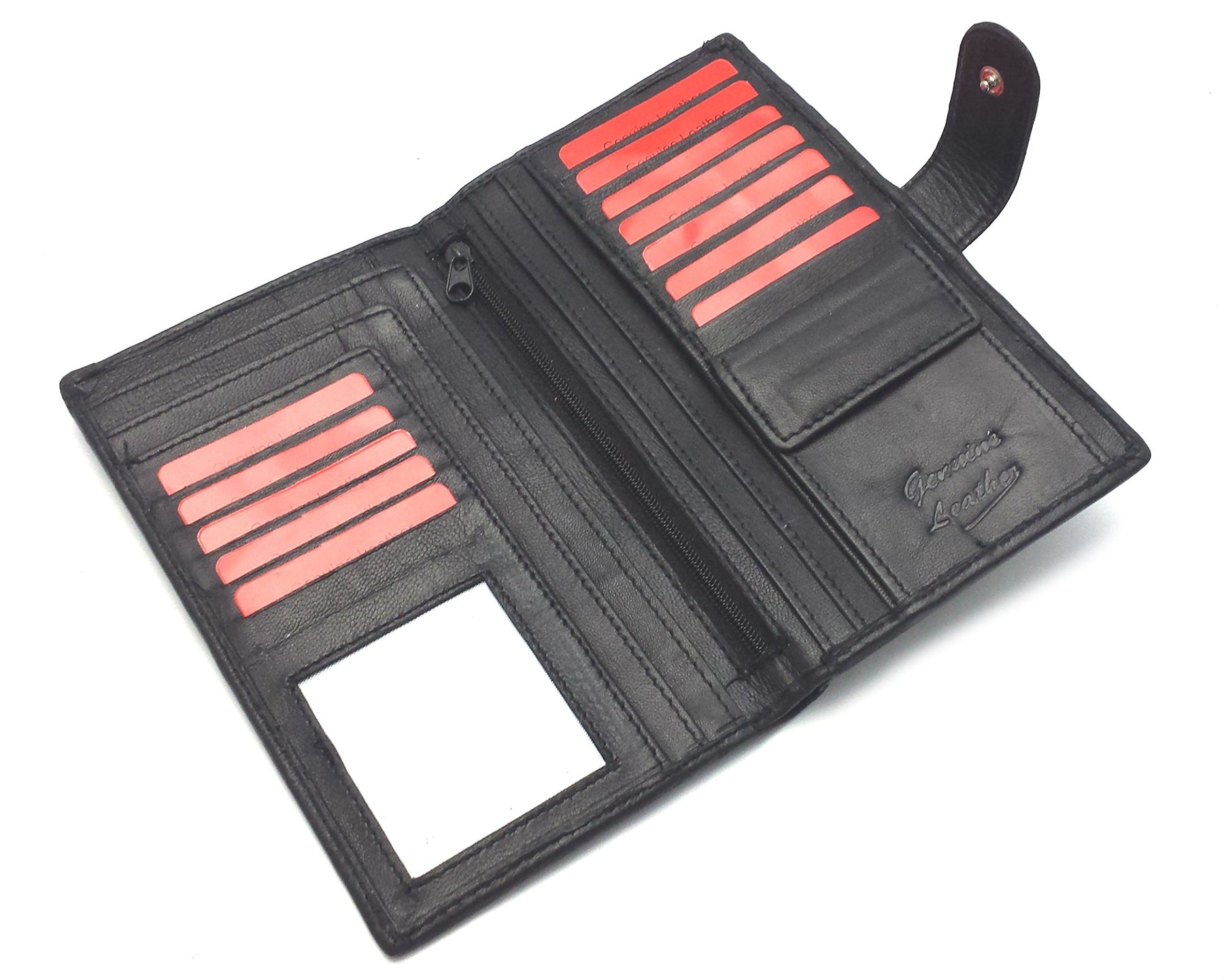 Details: Our wallets are equipped with advanced RFID Block unique metal composite, which blocks RFID signals and protects the valuable private information stored on RFID chips from unauthorized scans. Slim Fold Tall Coat Wallet Button Closure 5 Credit card slots plus 1 Clear Slot for ID, Photos 2 Deep Note pockets for Cash, TC's plus, notes etc. 1 Secure Zipped Pouch, Stud Fastening Coin purse. Size 17 x 9 cms